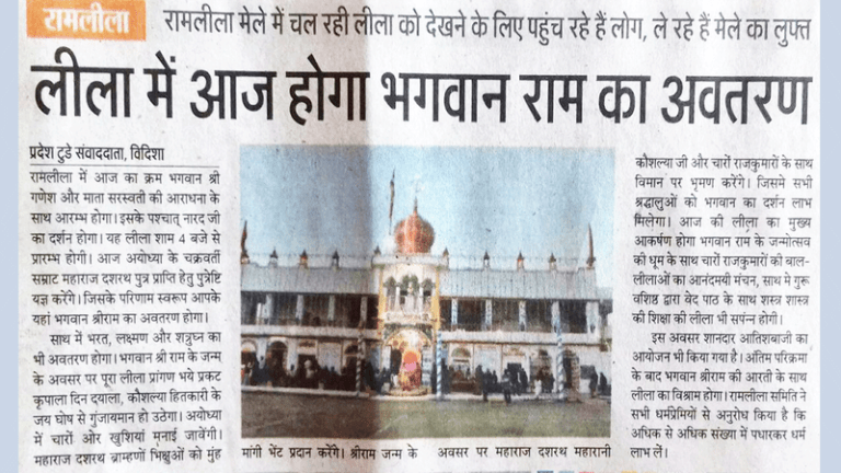 श्रीराम लीला मेला समिति, विदिशा आप सभी श्रद्धालुओं एवं दर्शकों का हार्दिक स्वागत करती है। यह समिति वर्षों से रामलीला की पावन परंपरा को सहेजते हुए धर्म, संस्कृति और आस्था का संदेश जन-जन तक पहुँचाती आ रही है। ऐतिहासिक विरासत और अनुशासित परंपराओं के साथ आयोजित यह रामलीला केवल एक मंचन नहीं, बल्कि भारतीय संस्कृति की जीवंत अभिव्यक्ति है।